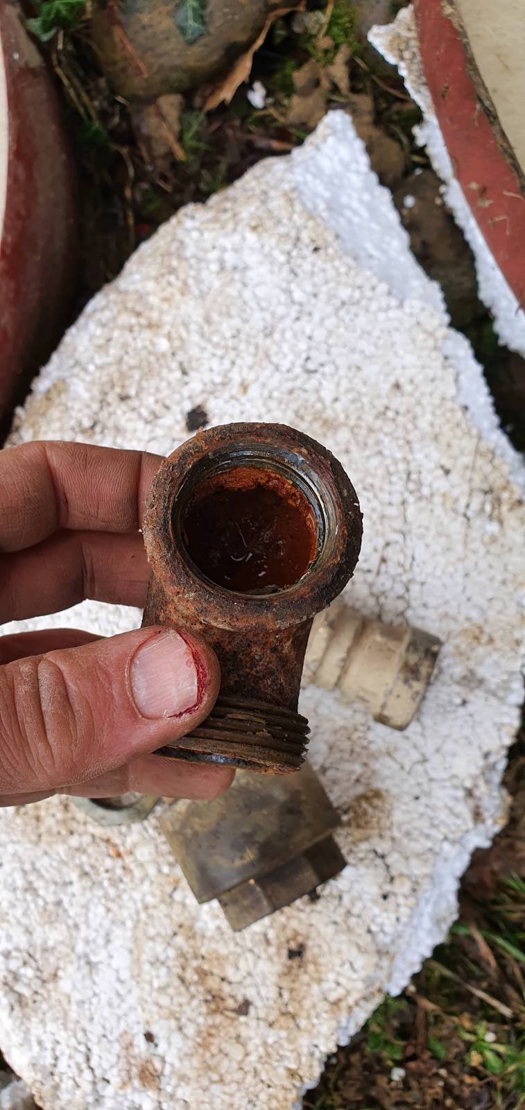 En effet, notre client avait bricolé son arrivée d'eau avec de l'acier, de la fonte , du laiton et du plastique... un super mélange corrosif sur l'eau potable...
